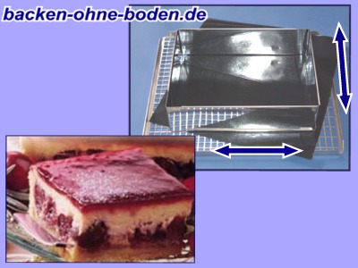 1. als Backunterlage nehmen Sie eine unsere Tortenscheiben aus Aluminium, die gibt es in runder oder in rechteckiger Form. Natürlich können Sie auch Ihr Herdblech dazu verwenden sofern es richtig eben ist, damit zwischen dem Backrahmen und der Unterlage keine Möglichkeit besteht, daß der Teig auslaufen kann