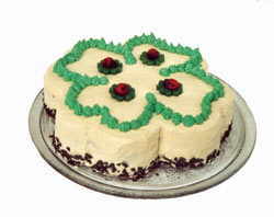 Temperatur haben) Die Böden mit Orangenlikör beträufeln und Creme einfüllen .Das zusammengesetzte Vierblatt mit der restlichen Creme bestreichen. Für die Dekoration etwas Orangencreme mit Speisefarben färben .Torte kühl stellen damit Creme etwas fest wird.